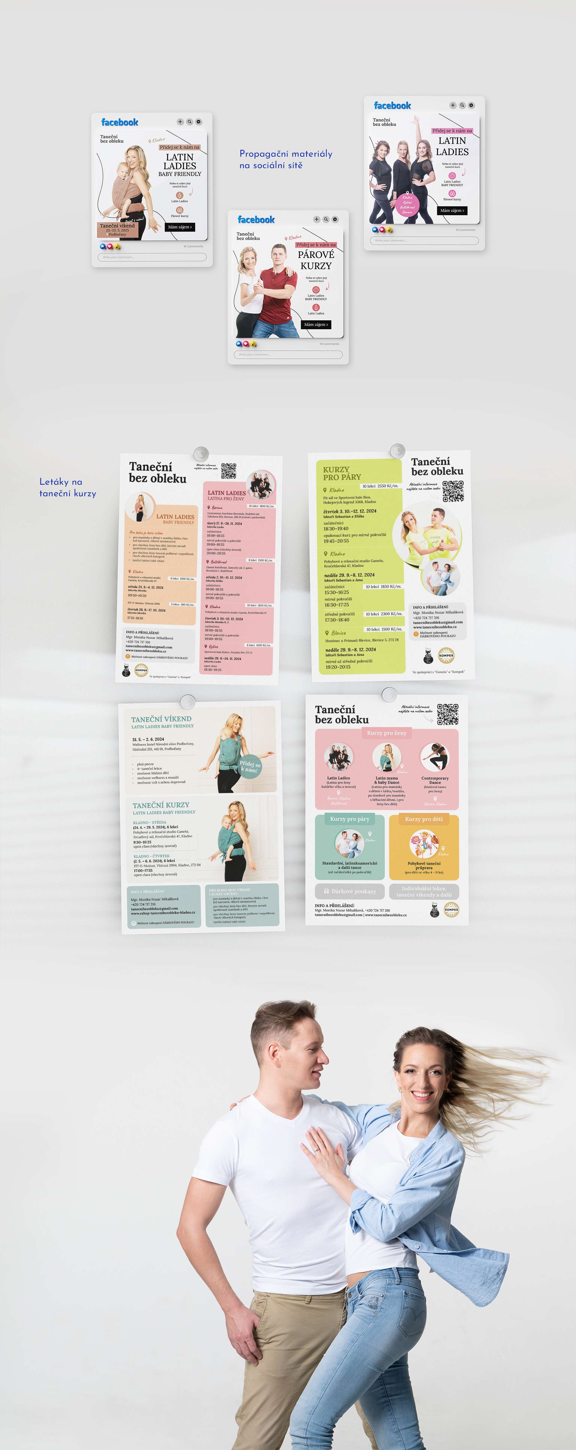 Pro mou stálou klientku, šikovnou a milou tanečnici, vytvářím propagační materiály pro online i tisk. Požadavek byl využití pozitivních barev a udržet přehlednost s ohledem na poměrně větší množství informací na tiskovinách.